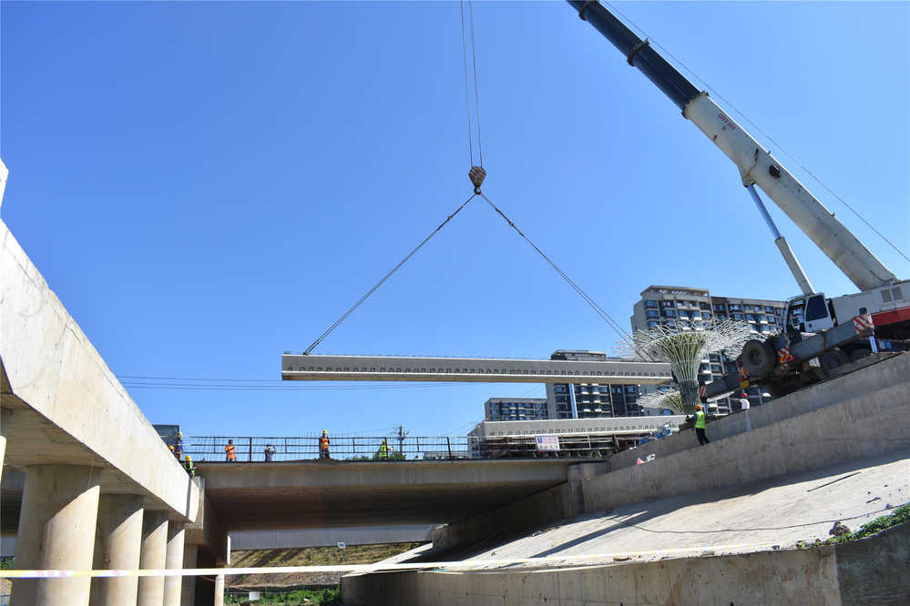 ? 橋板吊裝作業(yè)前,監(jiān)理單位、項(xiàng)目部與吊裝單位召開了橋梁吊裝施工方案專題會議,研究并確定了橋板的吊裝順序、車輛運(yùn)輸路線以及具體的吊裝方案;項(xiàng)目部參照吊裝方案做足前期準(zhǔn)備,在做好疫情防控各項(xiàng)措施的前提下,組織管理人員對吊裝作業(yè)人員進(jìn)行技術(shù)交底和安全交底。吊裝過程中,項(xiàng)目部與材料分公司高效配合,吊裝工序銜接緊密,安全順利地完成了吊裝任務(wù)。